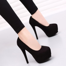 2017春季超高跟14CM单鞋女性感夜店防水台浅口欧美高跟鞋细跟绒面