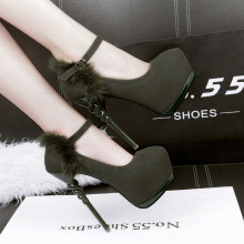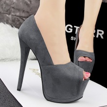 欧美复古风性感细跟超高跟防水台绒面浅口鱼嘴单鞋夜店百搭高跟鞋