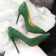 2017春秋单鞋欧美简约尖头高跟鞋玫红.绿.酒红OL性感气质细跟女鞋