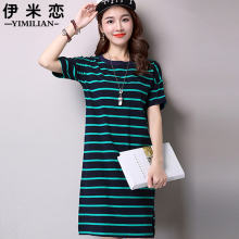 过膝黑白条纹t恤裙女夏中长款显瘦宽松短袖纯棉韩版百搭连衣裙潮