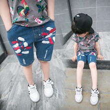 童装男童彩印牛仔裤2017新款春款儿童油漆休闲裤子中小童宝宝短裤