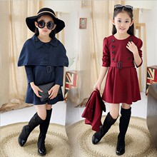 大童装女童春秋装2017新款儿童长袖韩版披肩女孩公主连衣裙潮