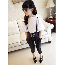 童装2017新款夏装女童哈伦背带裤中大童宫廷风七分裤儿童小脚裤子