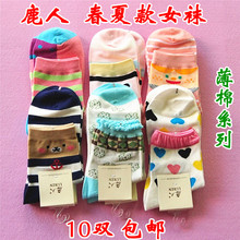 10双包邮鹿人女袜春夏款薄棉线女士棉弹力提花3008 正品船袜子