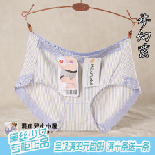 满39包邮 正品黛丝少女小清新有机棉条纹花边女士中腰三角内裤