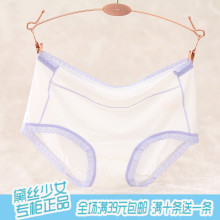 夏天穿 正品黛丝少女新款冰丝网纱边女士条纹中腰内裤 满39包邮