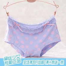满39元包邮黛丝少女内裤正品小圆点蕾丝边莫代尔棉女士中腰内裤