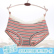 满39包邮 正品黛丝少女新款蕾丝边小清新条纹舒适莫代尔女士内裤