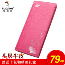 啄木鸟钱包女长款真皮薄款女士钱包女式牛皮软钱夹手包2017新款