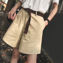 2017夏季新款纯色休闲中裤五分裤女 高腰宽松显瘦阔腿裤潮 送皮带
