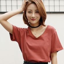 夏季竹节棉短袖T恤女宽松2017新款万年百搭基础款V领破洞纯色女装