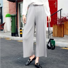 2017新款韩版高腰百褶丝绒阔腿裤女夏学生九分春宽松秋冬直筒裤子