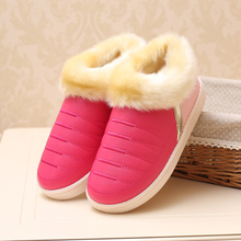乐拖2015冬季新款简约防水棉拖鞋女居家室内PU皮冬天毛绒保暖拖鞋