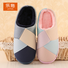 乐拖 2015冬季新款韩式PU防水皮棉拖鞋男女情侣冬季保暖居家拖鞋