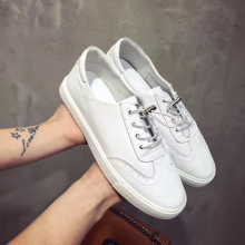 夏秋韩版真皮小白鞋女单鞋圆头雕花牛皮系带低帮休闲软皮舒适女鞋