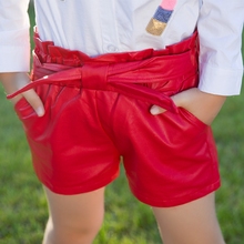 女童皮短裤 秋冬韩版紧身PU皮裤短裤黑色红色休闲靴裤打底裤潮