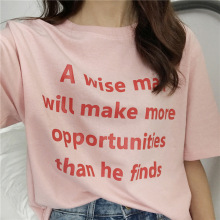 [言莎]韩国订单 2017春夏款套头宽松印花字母圆领短袖休闲T恤女装