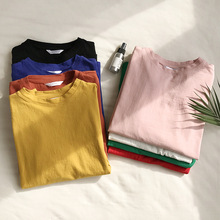 [言莎]韩国订单 韩版春夏款2017年新款宽松纯色圆领短袖棉T恤女装