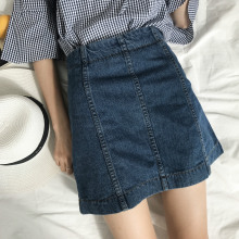 [言莎]2017新款 韩版夏季高腰纯色水洗拉链半身短裙A字裙牛仔裙女
