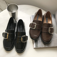 [言莎]私物分享 韩版乖巧金属纯色金属扣方扣PU皮圆头小皮鞋女鞋