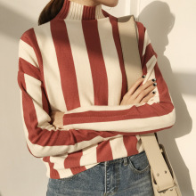 [言莎]韩国订单 韩版甜美竖条纹半高领长袖套头打底毛针织衫女装