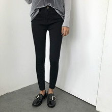 [言莎]韩国订单 韩版修身弹力纯色割破缺口铅笔裤小脚裤牛仔裤女