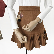 [言莎]韩国订单 韩版纯色麂皮绒毛绒挂件防走光百褶鱼尾半身裙女