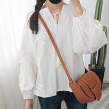 [言莎]韩国订单 秋款流苏系带娃娃衫女装韩版蕾丝花边灯笼袖衬衣