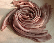 新款女秋冬纯色真丝欧根纱杭州刺绣丝巾长款桑蚕丝围巾纱巾