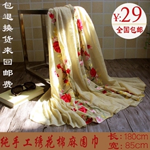 长款绣花女士丝巾双面大披肩棉麻灰色围女秋冬 人气潮围巾包邮
