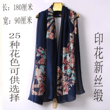 春秋长款桑蚕丝真丝丝巾女士披肩 新款时尚围巾缎面大沙滩巾