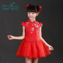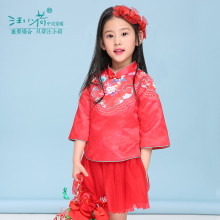 汪小荷2016新品中式童装儿童旗袍夏女童唐装裙古筝演出服 H1229W