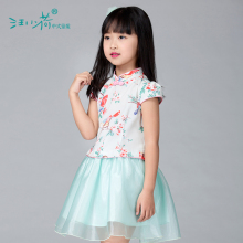 汪小荷2016年新品夏季女童装短袖印花大摆儿童旗袍裙X3289B
