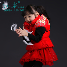 汪小荷中式童装2016年新品女童棉服绣花棉马甲带大帽子X5435N
