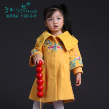 汪小荷2016年新品女童绣花毛呢外套民族风长款呢大衣X5437Z