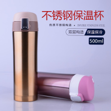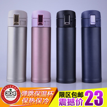 不锈钢保温杯 真空便携车载弹跳杯 日本款式男女士 定制广告LOGO