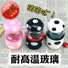 蘑菇迷你玻璃杯子创意便携带茶隔可爱卡通儿童学生圆点牛奶小水杯