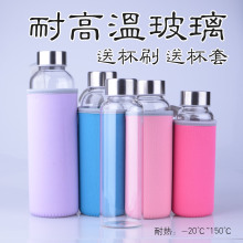 车载玻璃杯防爆水杯便携透明带套运动耐热保温高硼硅水瓶全国包邮