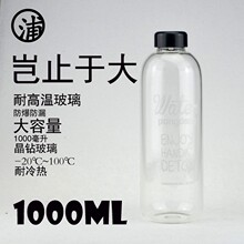 大容量玻璃杯子 韩国流行透明水杯子男女士学生耐热水瓶1L/1000ml
