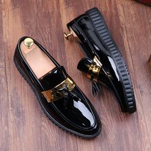 夏季透气英伦男士休闲鞋社会小伙小皮鞋漆皮亮面圆头男鞋子豆豆鞋