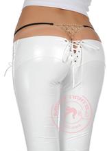 超低腰时尚显个性性感酷黑弹力PU拉链系带裆紧身小脚裤GK14