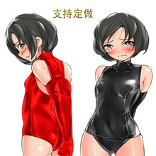 魅色装乳胶氨胶面束身连体紧身衣三角连体塑身衣前开拉链GN54