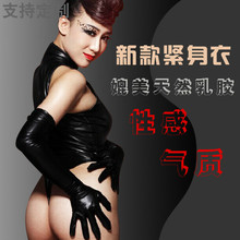 男士酷炫连领长手套超酷超性感紧身乳胶氨露身长袖NT01