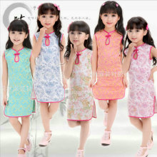 滴水简约儿童唐装小旗袍小礼服女童提花棉夏装公主裙小孩旗袍礼服