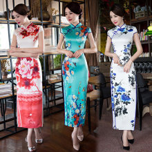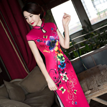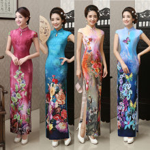 旗袍长款2017新款丝绸双层复古民族风宴会礼仪晚礼服旗袍连衣裙女