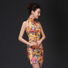 2017新款春夏装短款旗袍性感夜店修身时尚挂脖连衣裙改良宴会礼服
