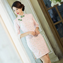 旗袍2017新款春夏装改良低领棉麻时尚复古显瘦修身短款旗袍连衣裙