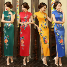 旗袍复古绣花时尚改良中式修身新娘结婚伴娘礼服长款旗袍连衣裙女
