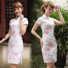旗袍2017新款夏装改良时尚优雅复古绣花修身短款女旗袍连衣裙