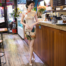 2017春秋新款 小清新优雅短款旗袍日常改良修身连衣裙旗袍礼服